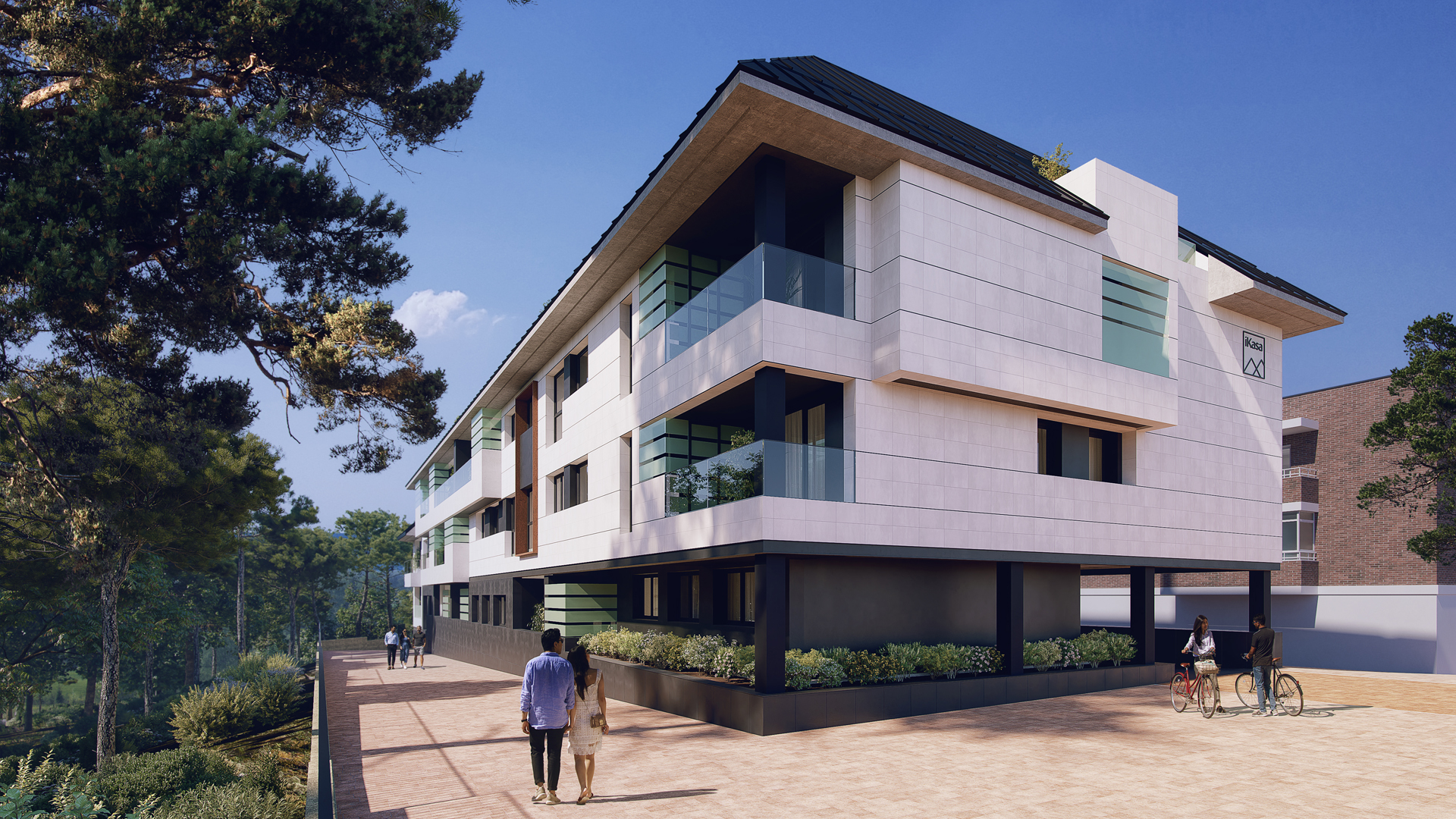 El edificio es un bloque exento con un único portal donde se desarrollan 44 viviendas y 6 apartamentos.